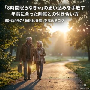 年齢に合った睡眠との付き合い方 2026年4月17日2026年4月17日 「8時間眠らなきゃ」の思い込みを手放す ― 年齢に合った睡眠との付き合い方 「昔は朝までぐっすり眠れたのに、最近は夜中に目が覚めてしまう」「8時間眠ろうと早めに布団に入るのに、かえって眠れない」― そんなお悩みをお持ちで […]